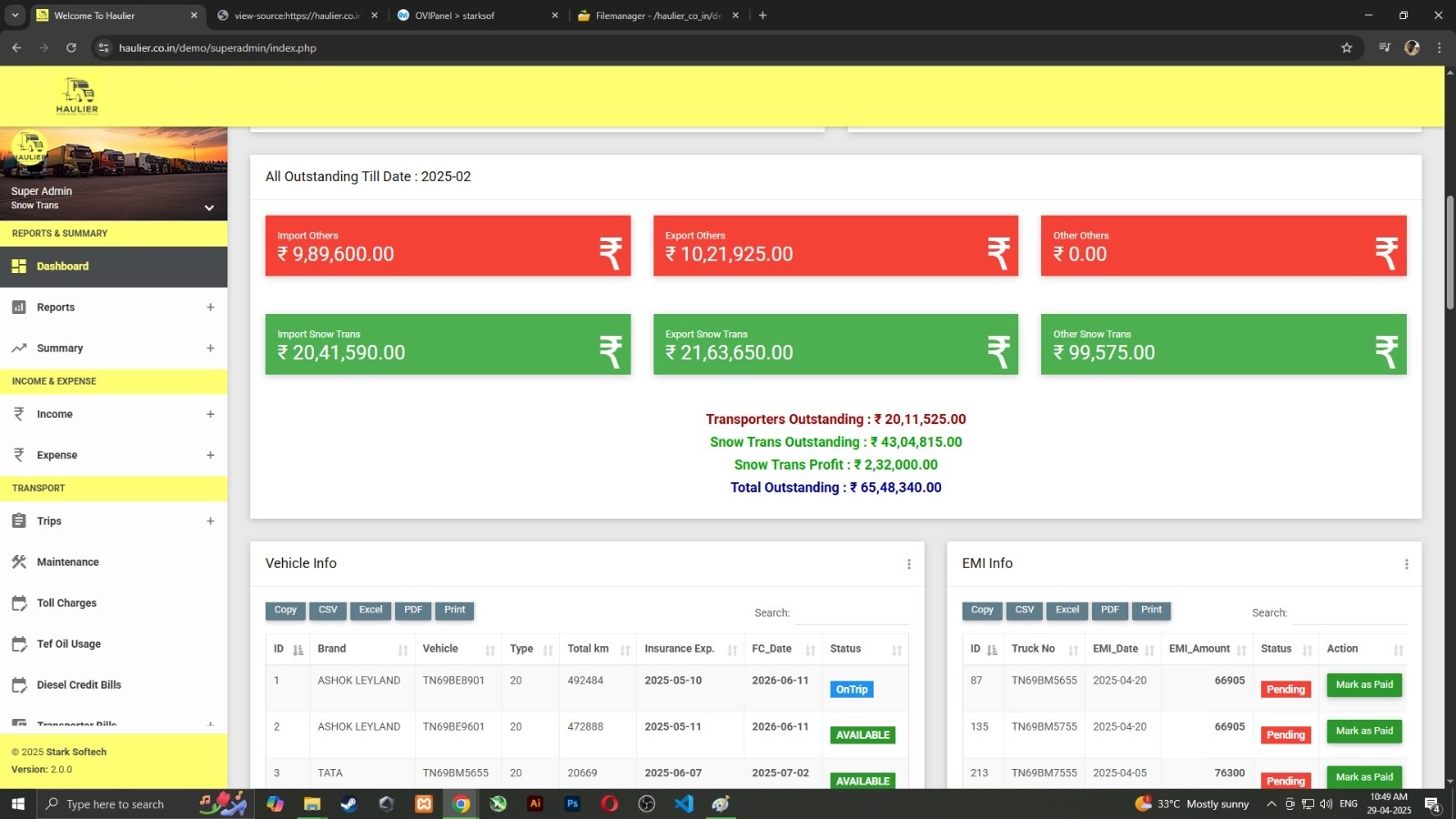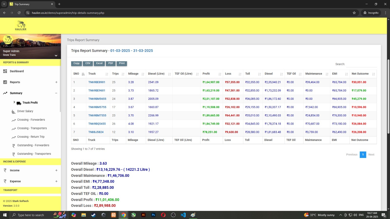 Tally and other software mismatch Haulier = Transport + Maintenance + Other Expenses + Accounts Sync