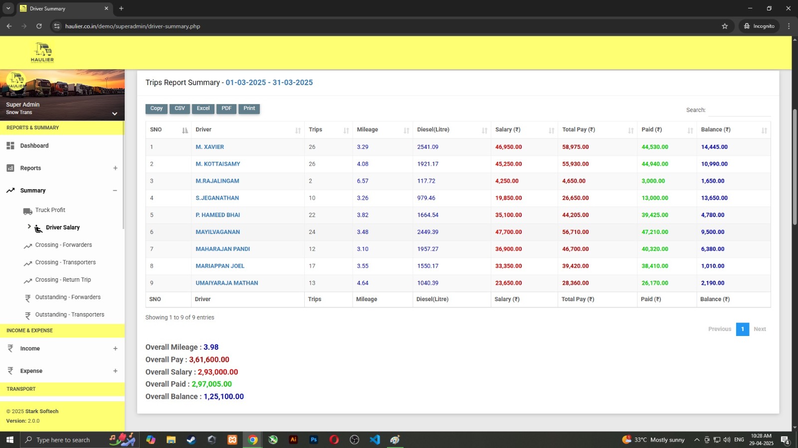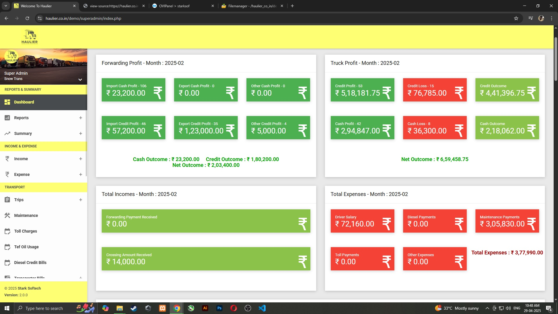 Tally and other software mismatch Haulier = Transport + Maintenance + Other Expenses + Accounts Sync